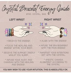 S obzirom da slika govori više od tisuću riječi, razlikujemo nošenje kristala na lijevoj desnoj ruci (u pravilu, nosim ih svuda, po cijelom tijelu, naročito ako me prebaci ). Ako nešto želite, trebate ili očekujete primiti – nosite kristale na lijevoj strani ruke (ili tijela). Recimo zaštitu ili izgubljeni paketić s Temu-a. U slučaju da nešto morate dati ili pružiti – kristale nosimo na desnoj strani, odnosno ruci.