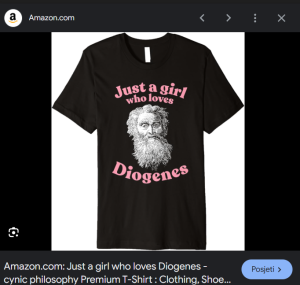 Diogen bi vjerojatno poludio kada bi znao kako danas, mi robovi konzumerizma, online naručujemo majice, veste i cekere s njegovim likom i popratnim anegdotama. I, vjerojatno ne bi shvatio današnje aplikacije za upoznavanje jer – zar ne bi bilo ljepše vani, na suncu, po mogućnosti uz psa?